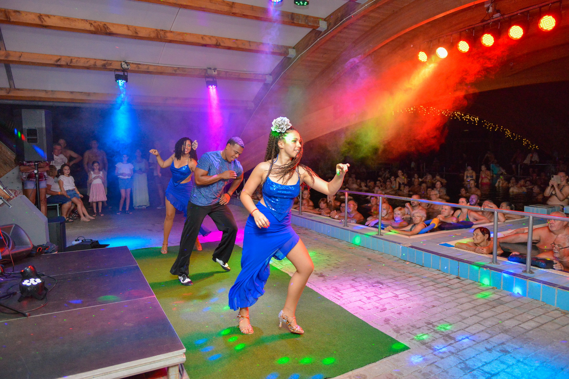 A koncertek a külső termál medencék mellett kerülnek megrendezésre.