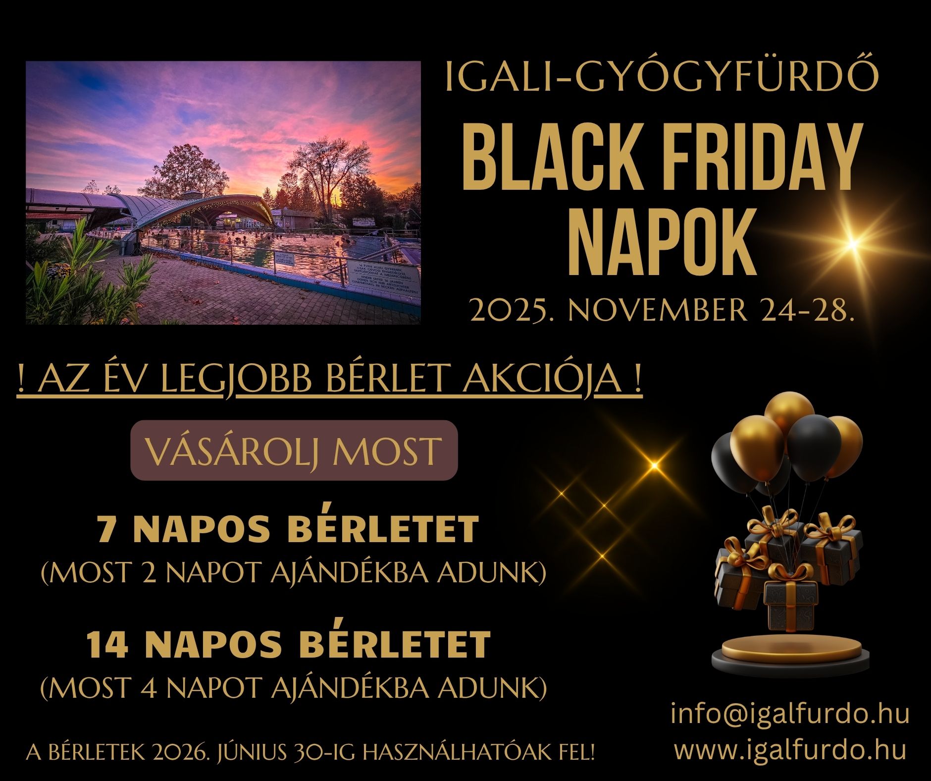 BLACK FRIDAY NAPOK AZ IGALI-GYÓGYFÜRDŐBEN, 2025. NOVEMBER 24-28. KÖZÖTT